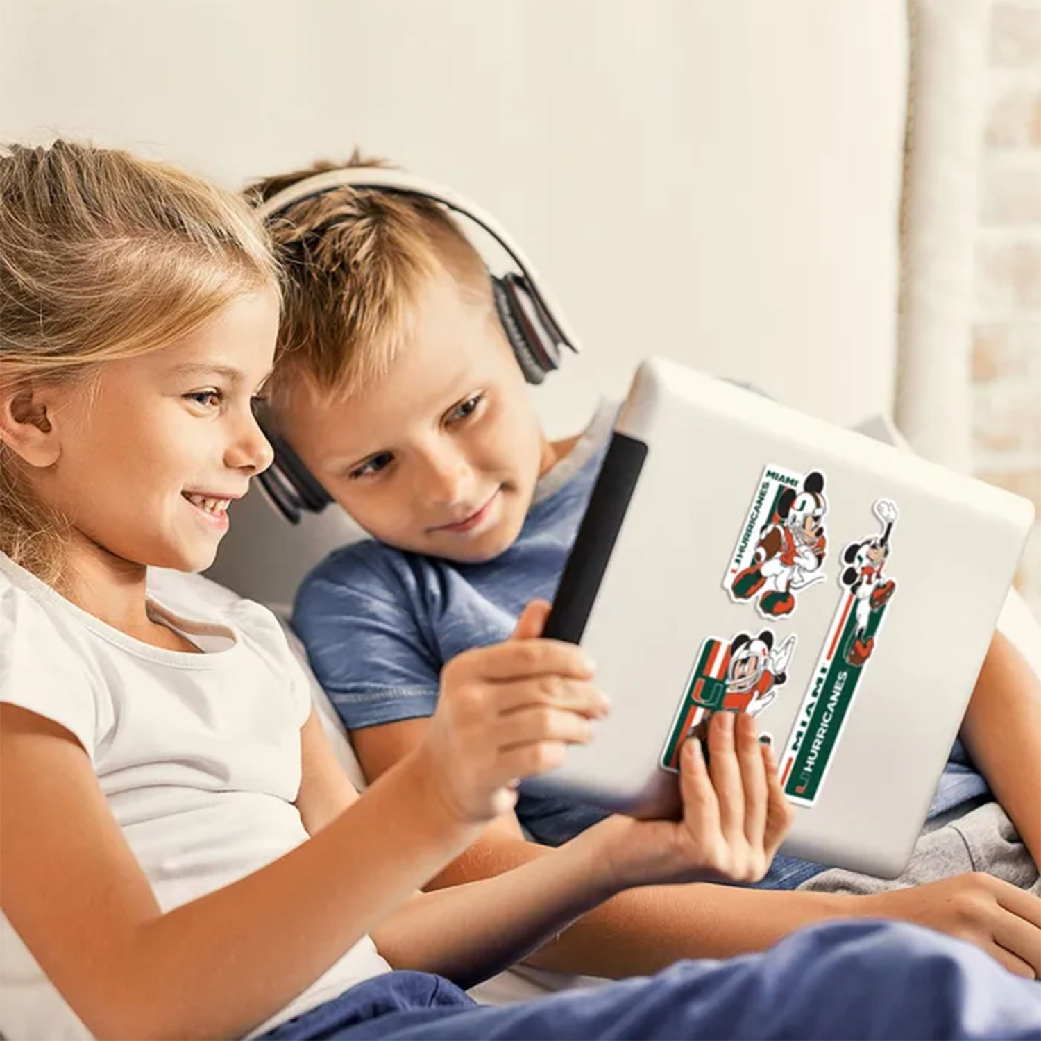 Add a fun, vintage-inspired touch to your Hurricanes gear with this Disney x Miami Hurricanes decal set featuring Mickey in football action poses.