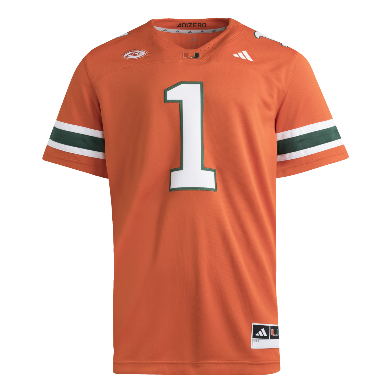 adidas Miami Hurricanes Orange #1 Premier Football Jersey