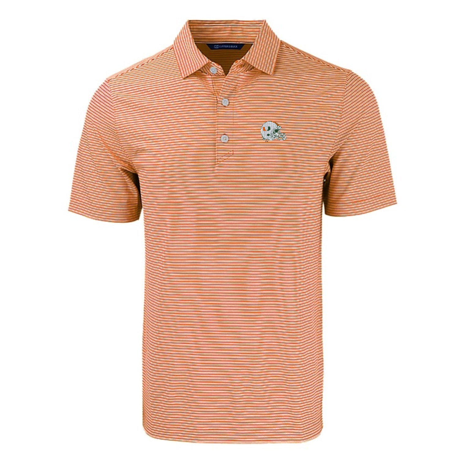 Cutter & Buck Miami Hurricanes Double Stripe Helmet Orange Polo