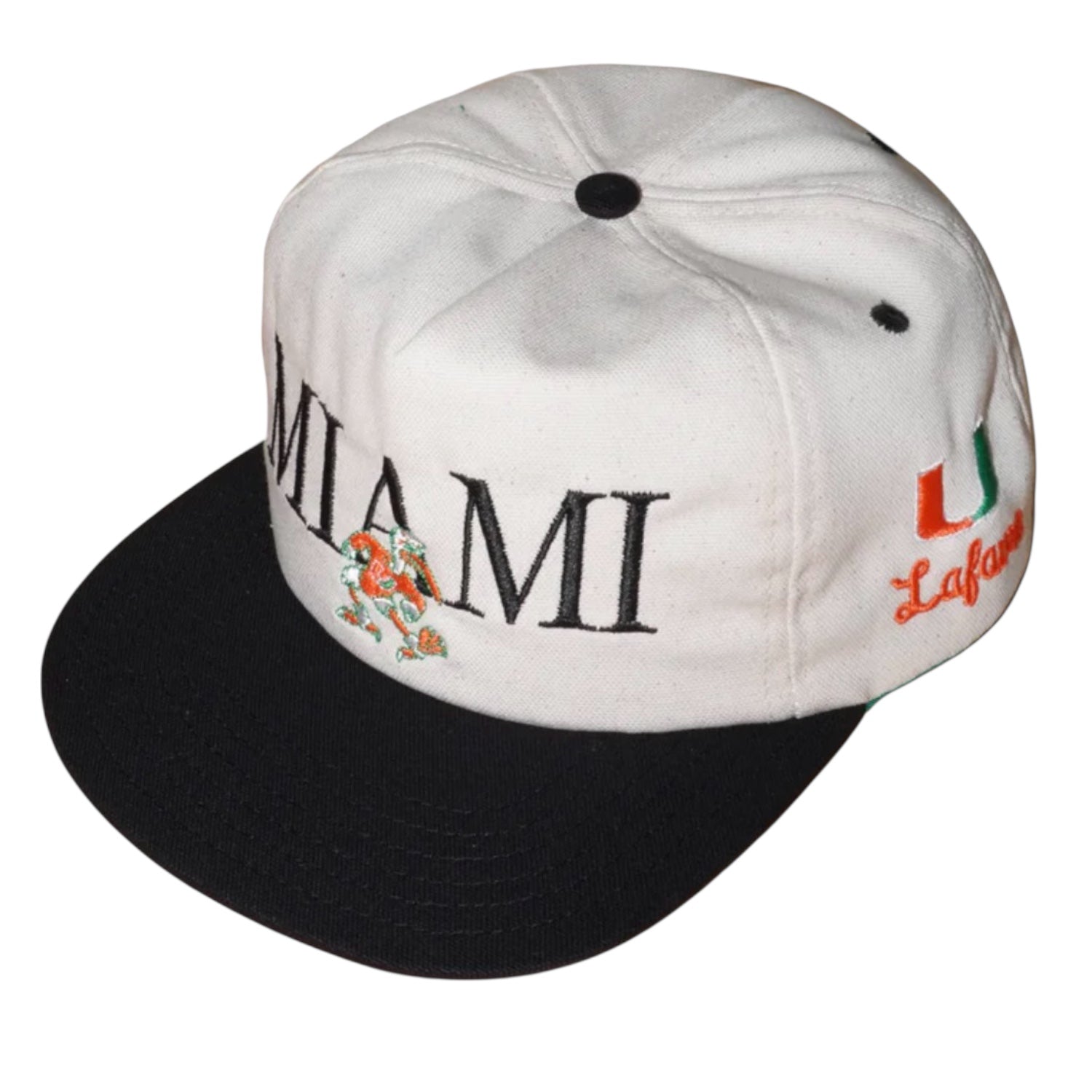 This cream and black Miami Snapback Hat is a bold classic that never goes out of style. Designed with an all-cream crown, contrast black bill, and embroidered “Miami” and Sebastian across the front, it’s the perfect finish to any game day fit. The structured build and snapback closure make for a comfortable, adjustable fit.