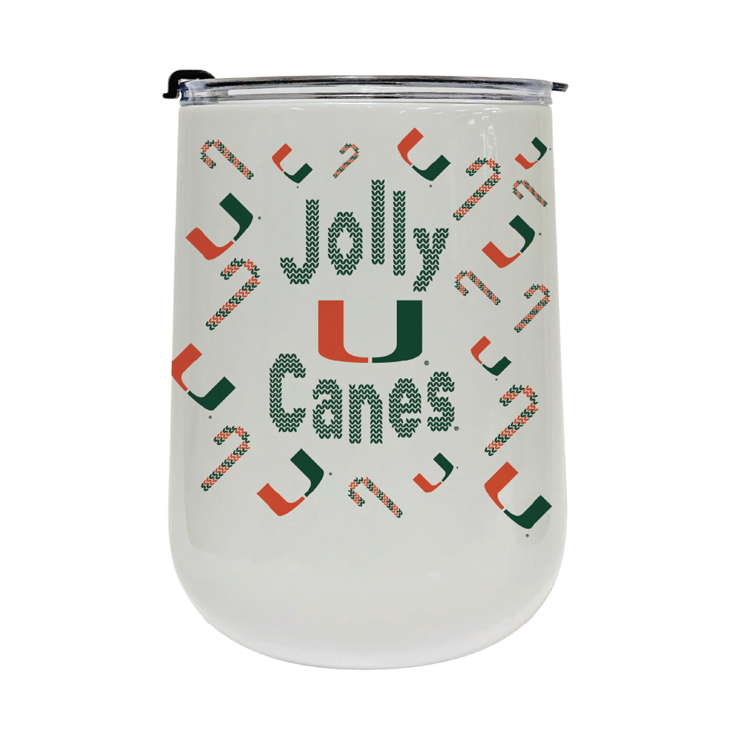 Indigo Falls Miami Hurricanes White Holiday Jolly Canes 18oz Stainless Steel Wine Tumbler