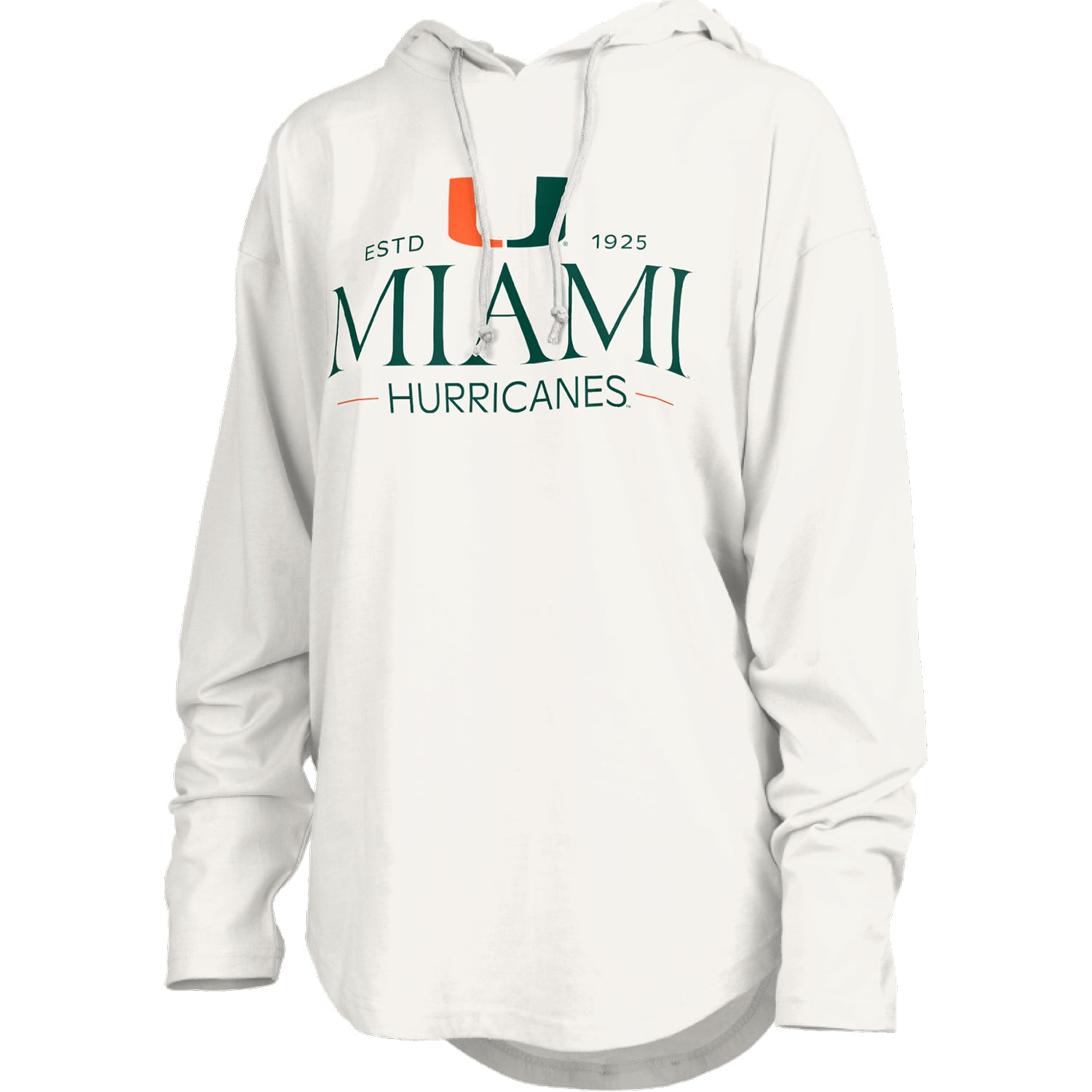 Pressbox Miami Hurricanes Women's White Long Sleeve Hooded T-Shirt