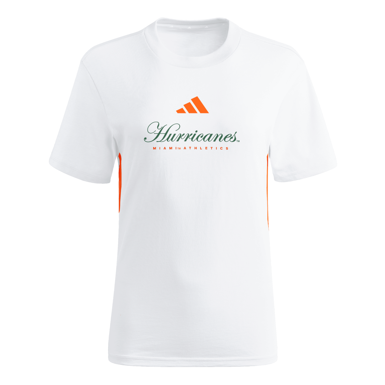 adidas Miami Hurricanes Women's White Hurricanes Athletics Script T-Shirt