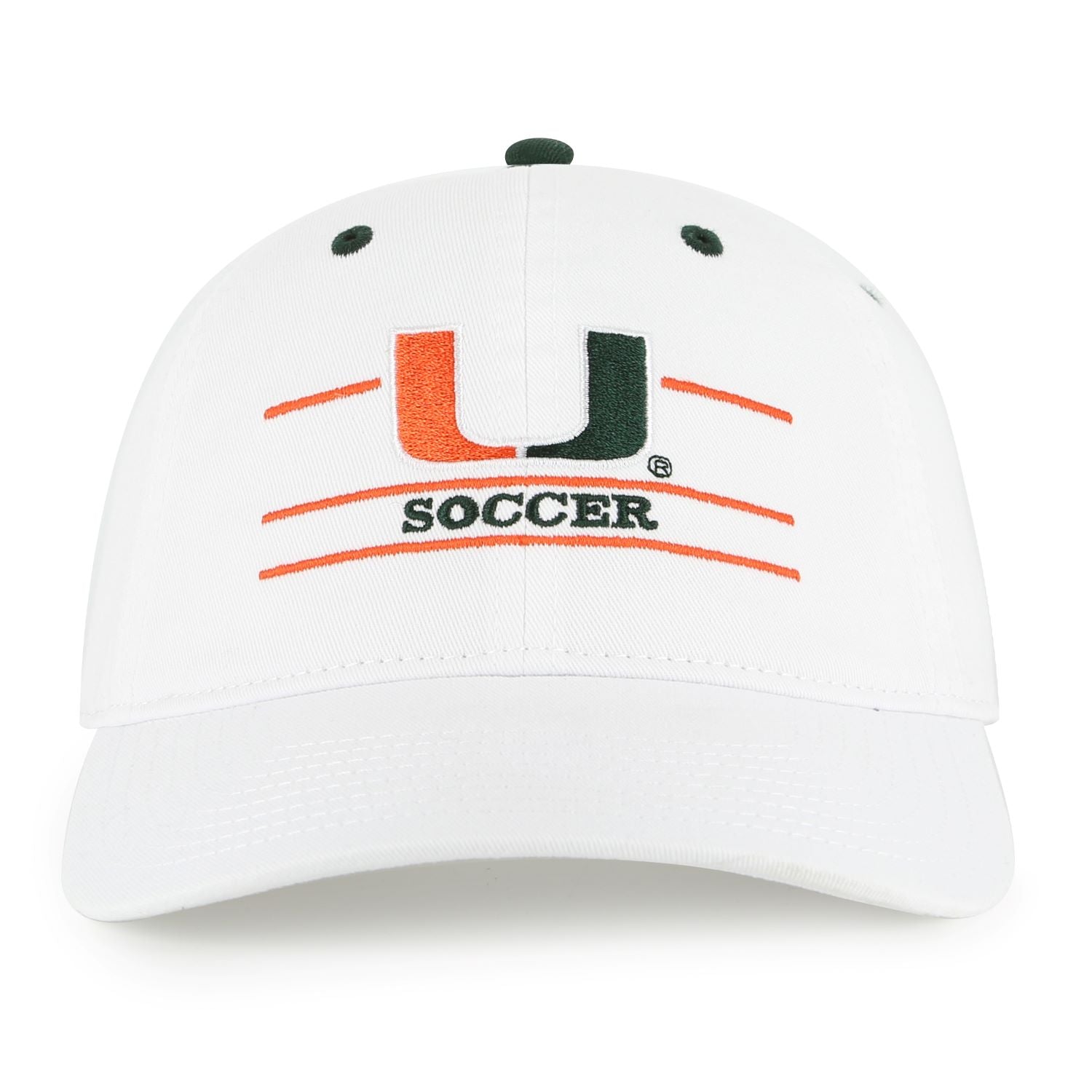 Show off your Miami pride with this classic U Soccer hat featuring bold embroidered text and the U logo on the front. Perfect for everyday wear or game day!