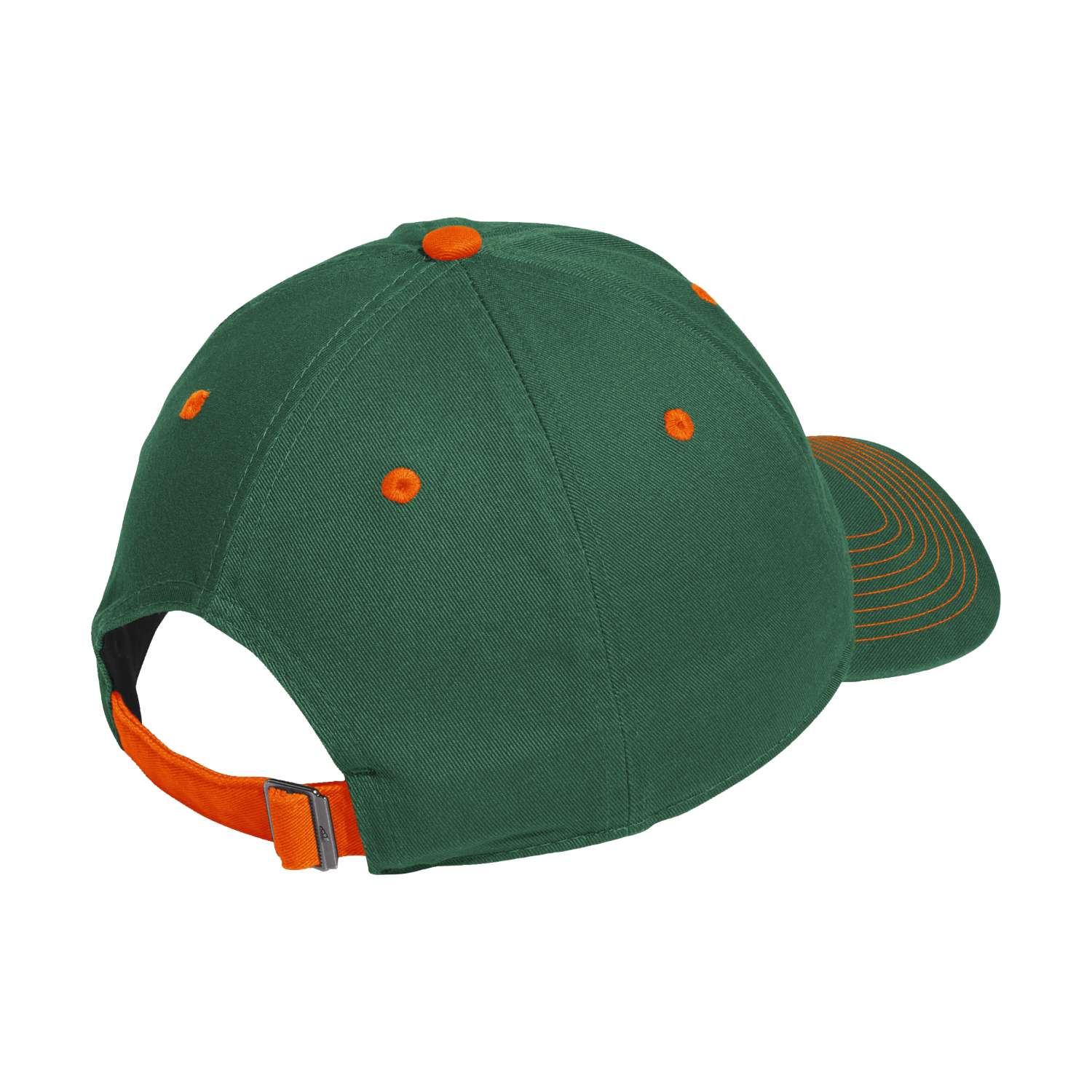 Top off your game day look with this classic green hat featuring the iconic Sebastian the Ibis mascot. Orange contrast details and stitching add a bold Miami-inspired touch, making this cap a perfect everyday accessory for showing your school pride on campus or at the stadium.