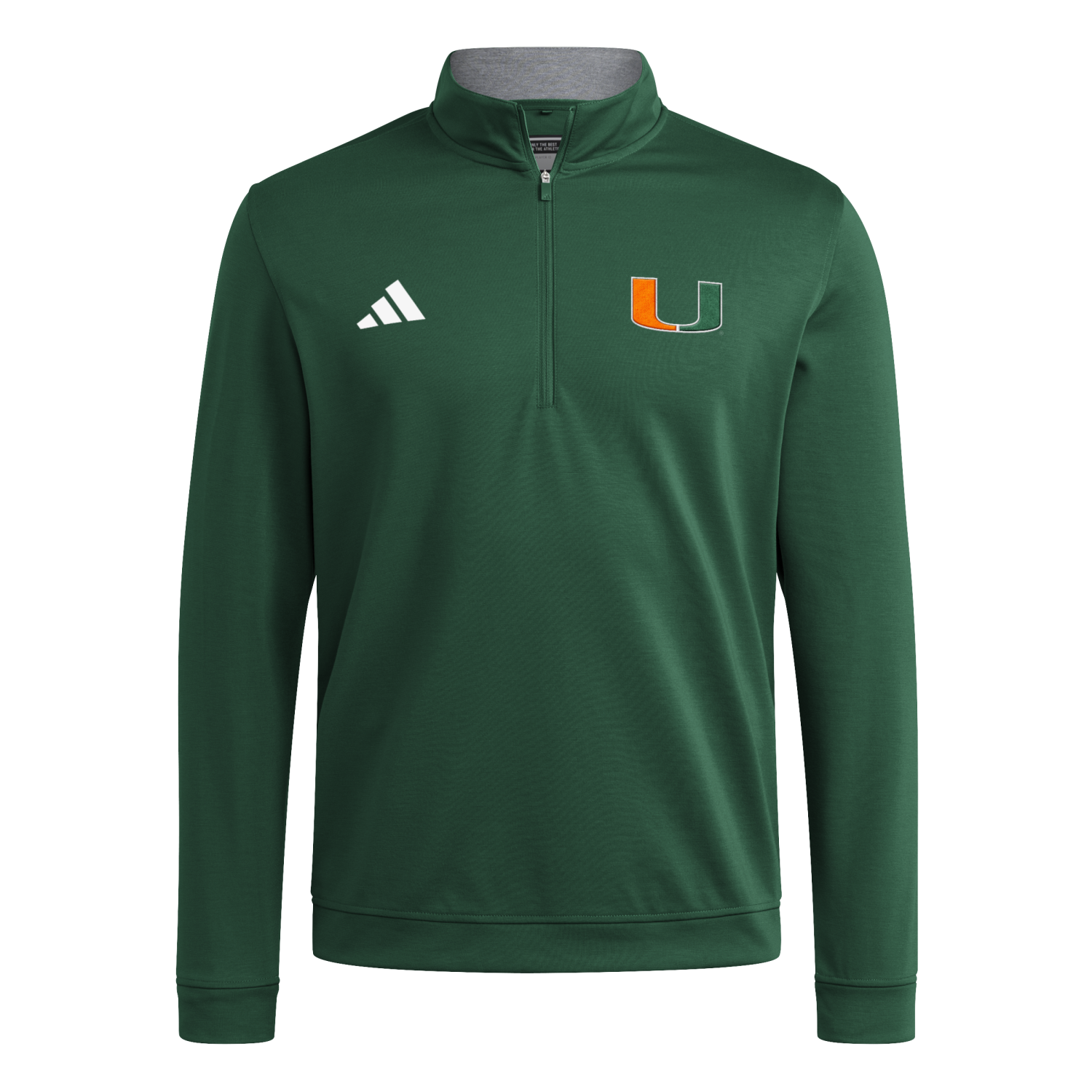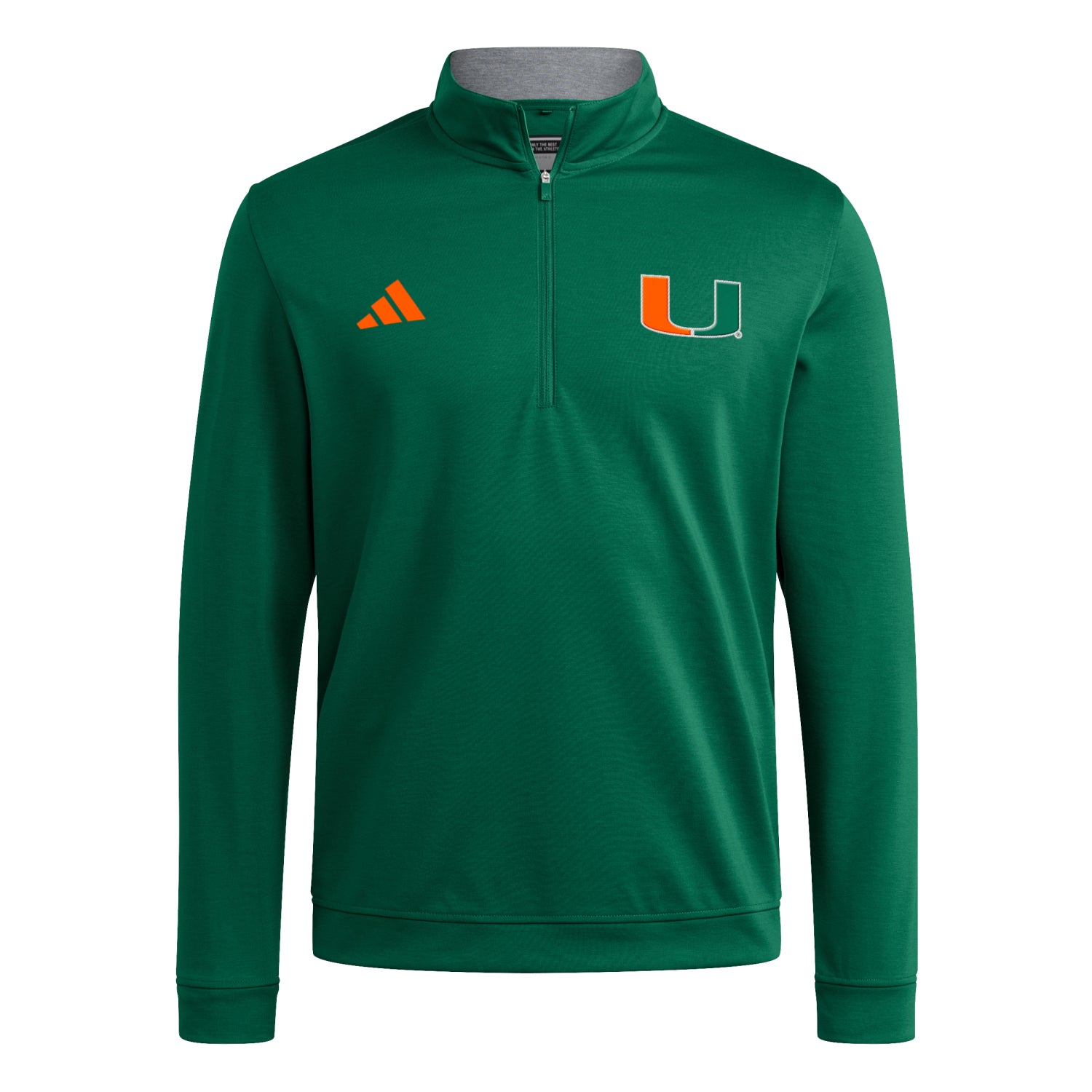 A sleek, lightweight layer built for game days and everyday wear, this green quarter-zip features a clean Miami “U” chest logo with a streamlined athletic fit that’s easy to dress up or down.