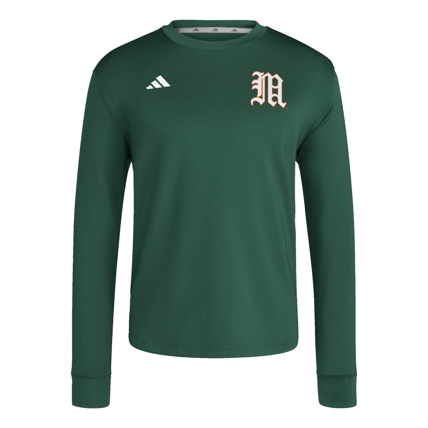 adidas Miami Hurricanes Green Old English "M" Long Sleeve Sweatshirt