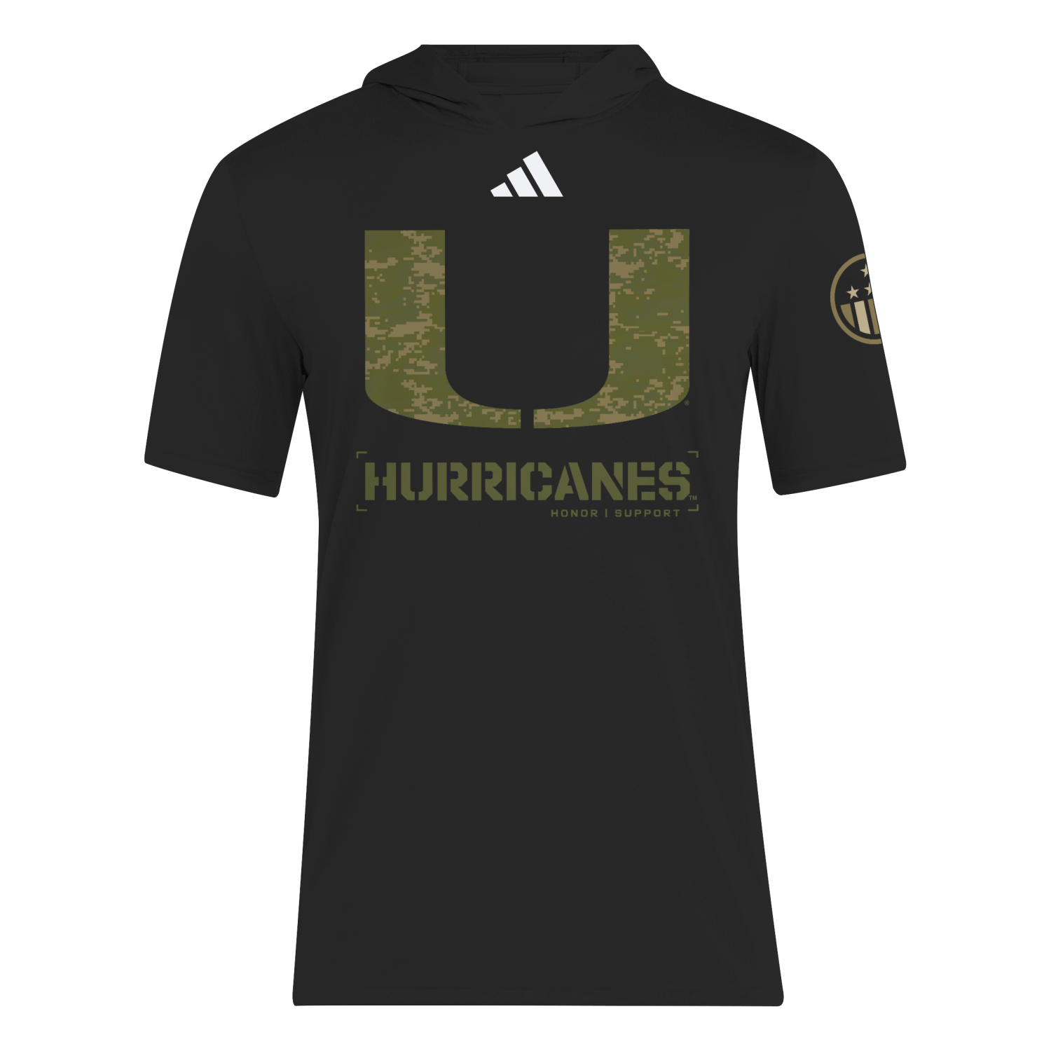 adidas Miami Hurricanes Black Salute to Service Short-Sleeve Hooded T-Shirt