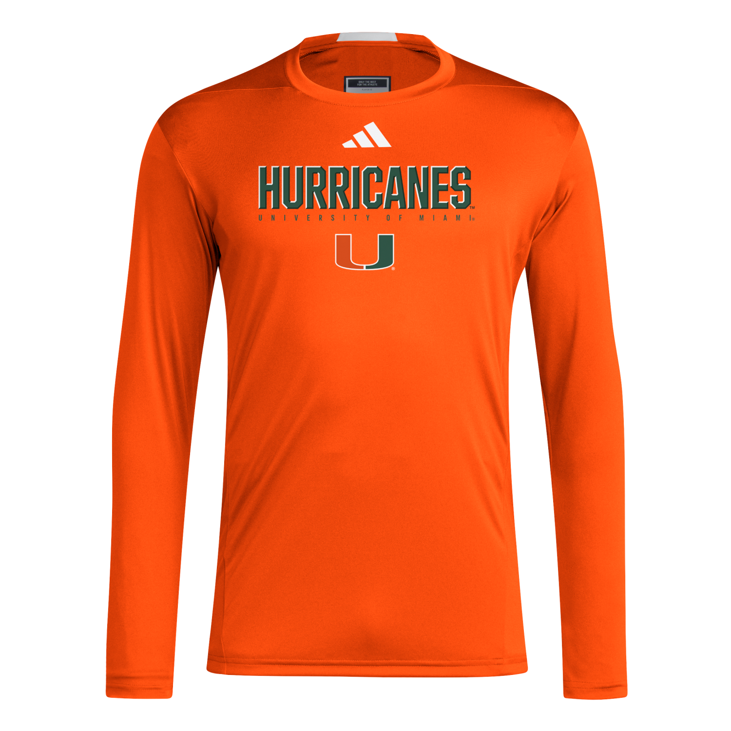 Train or cheer in comfort with the Adidas Miami Hurricanes Orange Long Sleeve Training Tee. Featuring lightweight fabric and bold team graphics, this shirt is perfect for layering or wearing solo on game day.