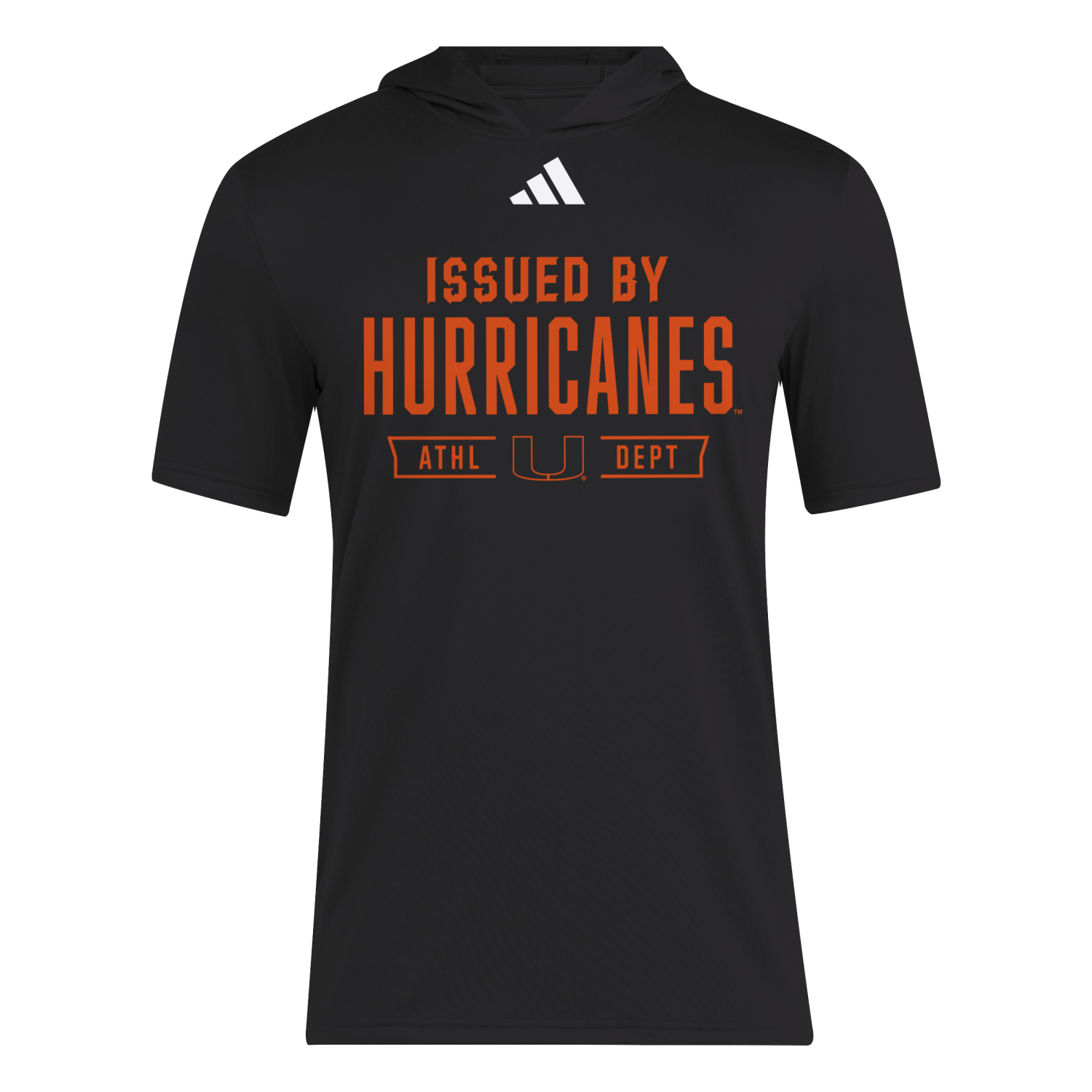 adidas Miami Hurricanes Black Short Sleeve Hooded Performance T-Shirt