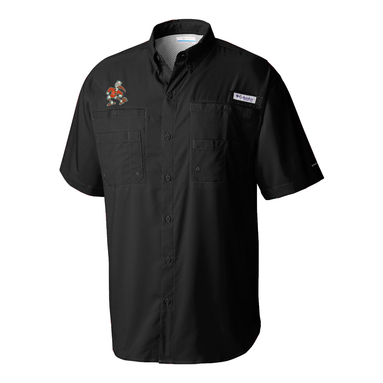 Columbia Miami Hurricanes Sebastian the Ibis Tamiami Button-Up Black Woven Shirt