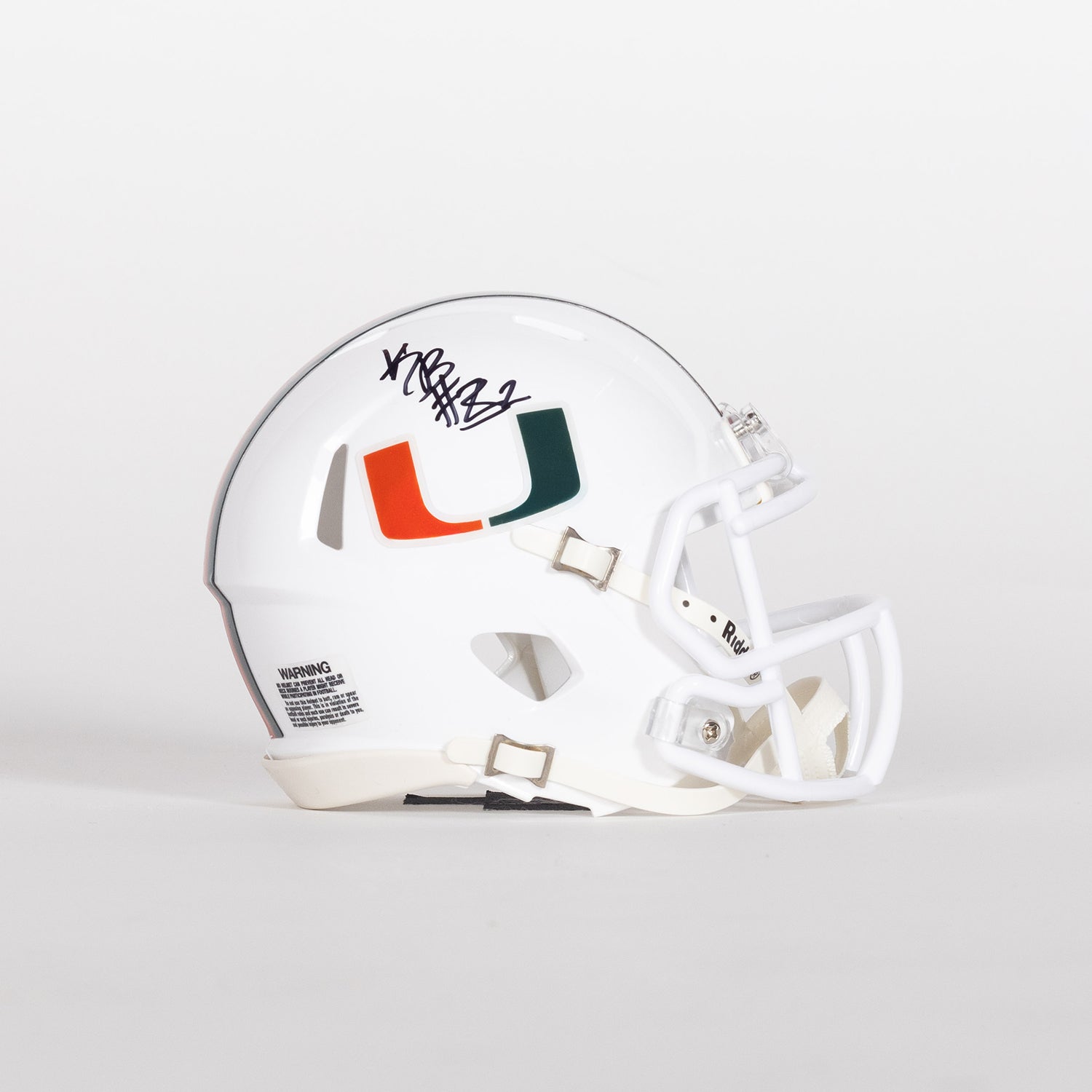 Showcase your support for Miami student athlete #32 Kamal Bonner with this autographed mini football helmet. Perfect for displaying your team pride or adding to your sports memorabilia collection, it's a must-have for any dedicated fan.