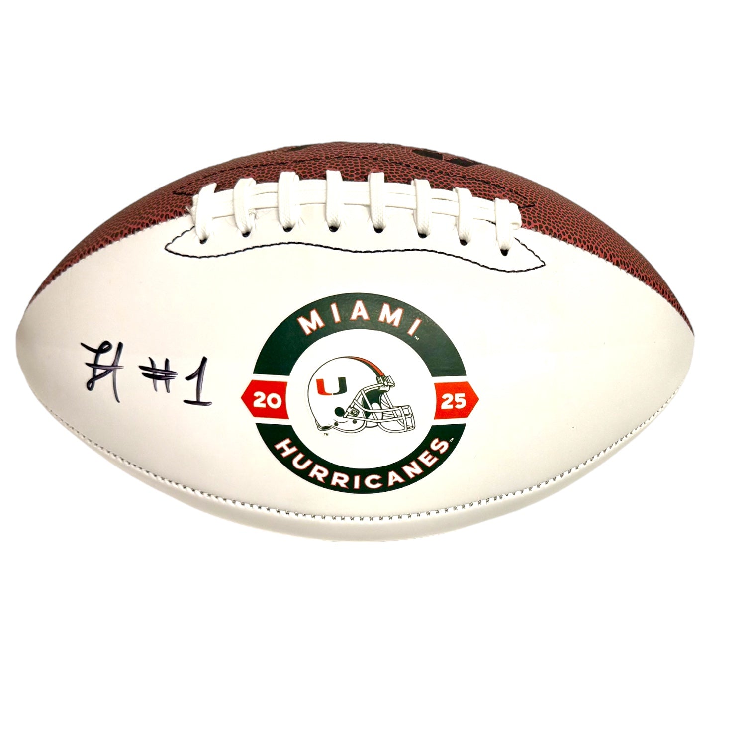 Showcase your support for Miami student athlete #1 Jojo Trader with this autographed full size football. Perfect for displaying your team pride or adding to your sports memorabilia collection, it's a must-have for any dedicated fan.
