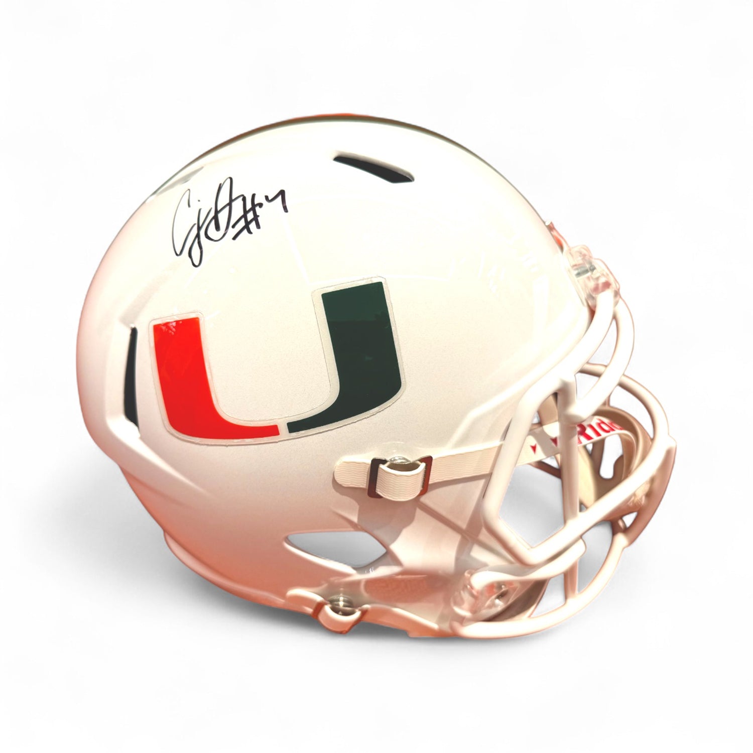 Showcase your support for Miami student athlete #7 CJ Daniels with this autographed full-size football helmet. Perfect for displaying your team pride or adding to your sports memorabilia collection, it's a must-have for any dedicated fan.